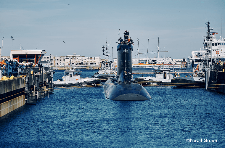 Le 24 février, le sous-marin nucléaire d’attaque De Grasse, a effectué sa première sortie à la mer, 18 mois seulement après le Tourville. Cette première sortie